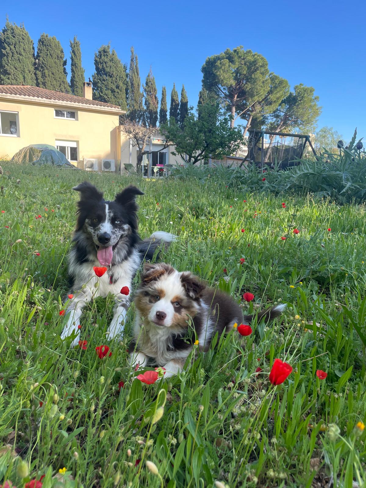 En complément de mon message de tout à l’heure, je vous joins une photo de notre petite Roxy qui a rejoint notre famille, il y a 1 mois et qui nous comble de bonheur. Elle s’épanouit aussi auprès de Joy, notre border d’1 an.
